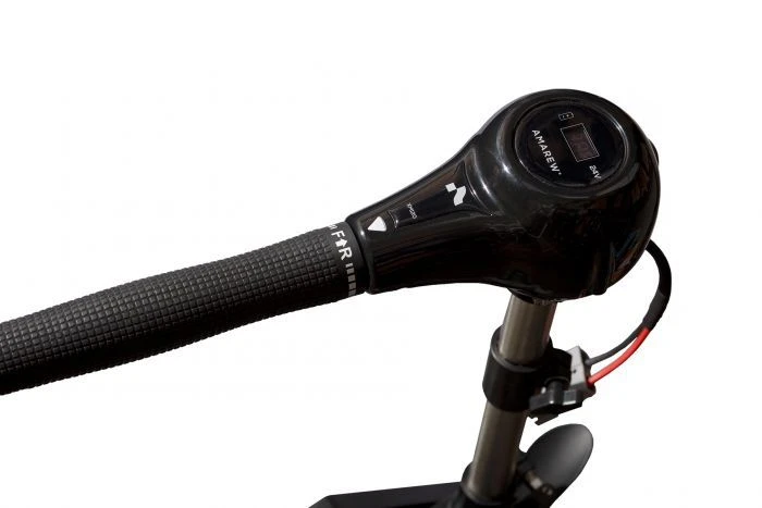 De Amarew XM120 elektrische buitenboordmotor is voorzien van een borstelloze motor. Door de borstelloze motor is de Amarew XM120 duurzamer en stiller dan vergelijkbare elektromotoren. De elektromotor wordt hierdoor bovendien minder snel heet. De motor slijt tevens minder snel dan een motor met koolborstels en gaat hierdoor langer mee. Om de bestuurder van de Amarew XM120 van gemak te voorzien, is de helmstok uitschuifbaar en traploos bestuurbaar. Hierdoor kan de snelheid geleidelijk worden aangepast. De helmstok is echter niet kantelbaar, waardoor u deze niet van hoogte kunt veranderen. Bij de Amarew XM120 wordt geen stuur of gashendel geleverd, dit is wel zo bij de Amarew XM120R. Hiermee kunt u de elektromotor besturen met een echt stuur in plaats van met een helmstok. De Amarew XM120 is gemaakt van RVS en is hierdoor zeer licht van gewicht. De Amarew XM120 weegt dan ook slechts 11 kg. Dit is ontzettend licht voor een elektrische buitenboordmotor in deze vermogensklasse.