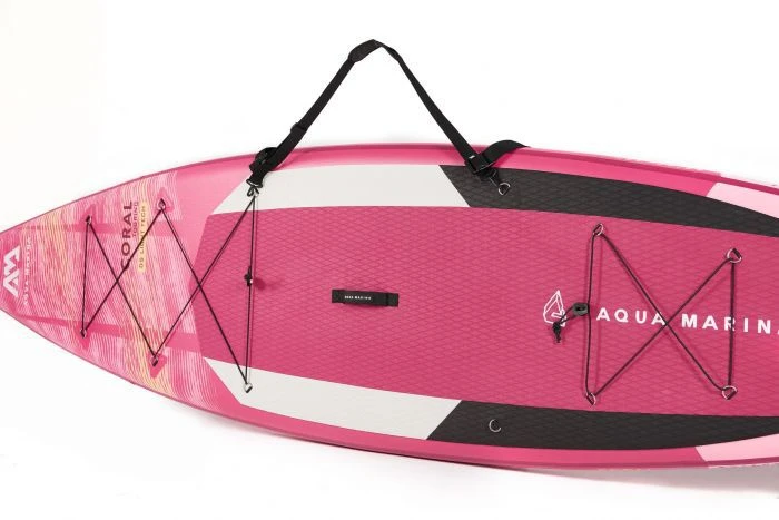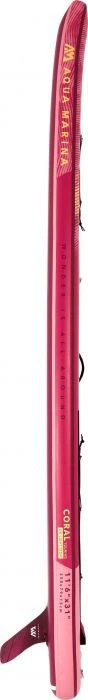 Het Aqua Marina Coral Touring SUP board is speciaal ontworpen voor vrouwen. Dit is terug te zien aan de kleur en het formaat van het SUP board. Ook is de Coral Touring ontworpen voor extra bagage of voor een kampeertripje. Door het formaat van het Aqua Marina Coral Touring SUP board is het board zeer stabiel en gemakkelijk te besturen. Hierdoor is het board geschikt voor de beginnende supper. Door het gemak en de stabiliteit is de Aqua Marina Coral Touring SUP geschikt om op avontuur te gaan. Dankzij de bagagekoorden aan zowel de voor als de achterkant kunt u al uw bagage kwijt zoals uw telefoon, eten of drinken. Door het brede en grote ontwerp is het Coral Touring SUP board niet geschikt voor hoge snelheden of sportief gebruik.