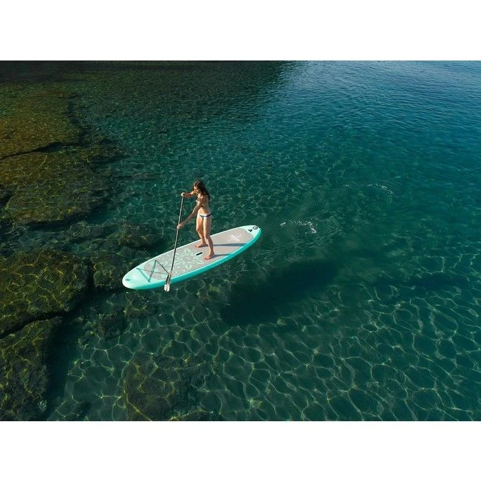 De Aqua Marina Dhyana is een opblaasbaar SUP board geschikt voor alle niveaus suppers. De Aqua Marina Dhyana onderscheid zich dankzij de maximale stabiliteit, zo is de Aqua Marina Dhyana uitermate geschikt voor yoga oefeningen. Daarnaast kunt u het SUP board dankzij het bijgeleverde koord verbinden aan de Aqua Marina Yoga Dock. Met de Aqua Marina Yoga Dock kunt u samen met een vriend(in) yoga oefeningen uitvoeren. Zo kunt u samen plezier maken en volledig tot rust aan de hand van yoga oefeningen. Het stabiele design van de Aqua Marina Dhyana maakt het SUP board ook geschikt voor beginnende suppers. Naast Yoga SUP board kunt u de Aqua Marina Dhyana ook gebruiken als traditioneel SUP board.