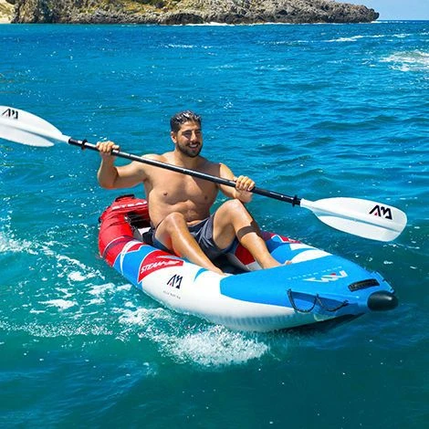 De Aqua Marina Steam ST-312 kajak is een eenpersoons, opblaasbare kajak. De Aqua Marina Steam ST-312 kajak is gemaakt van zeer sterk PVC materiaal en de bodem van de kajak heeft een dikte van 7 cm. Hierdoor presteert deze opblaasbare kajak even goed als een traditionele verharde kajak. De Aqua Marina Steam ST-312 kajak is door de hoge en comfortabele rugleuning en zachte voetensteun de beste keuze voor lange afstanden op milde rivieren. De Aqua Marina Steam ST-312 kajak is voorzien van een verharde voor- en achterkant.