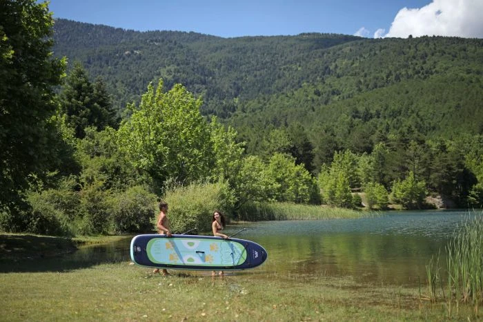 Het Aqua Marina Super Trip SUP board is voorzien van een groot oppervlak en biedt daardoor ook genoeg ruimte om samen met een vriend of vriendin een dagje op pad te gaan op het water. Tevens kunt u samen met uw partner en kind een dagje gaan suppen op het Aqua Marina Super Trip SUP board. Zo kunt u bijvoorbeeld een middag spenderen met uw gezin op de Aqua Marina Super Trip SUP tijdens uw vakantie aan het Gardameer. Onder het bagagekoord kunt u al uw bagage kwijt, zoals uw lunch voor tijdens een pauze op het wateroppervlak. Dankzij de meerdere handvatten op het SUP board is de Aqua Marina Super Trip gemakkelijk met meerdere personen te vervoeren. Door de grootte van de Aqua Marina Super Trip is het SUP board minder wendbaar dan andere Aqua Marina SUP boards.