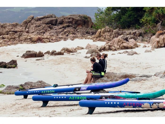 De Aztron Neptune wordt vaarklaar geleverd met een draagtas, vin, enkelkoord, handpomp en een peddel. In de draagtas kunt u de gehele set opbergen en ook eenvoudig vervoeren naar de plek waar u op avontuur wilt gaan. Op locatie kunt u eenvoudig de Aztron Neptune oppompen met de handpomp. Vervolgens kunt u het SUP board gereed maken door de vin te installeren. Deze zorgt namelijk voor meer balans tijdens het touren. Tijdens het touren wilt u ook voldoende grip hebben op het SUP board. Dankzij het gegraveerde dek zal u er niet snel vanaf glijden. Mocht u toch uit balans raken en er vanaf vallen, dan zorgt het enkelkoord voor meer veiligheid. Het SUP board zal namelijk niet van u af drijven. Zo kunt u zo snel mogelijk weer verder met het suppen.