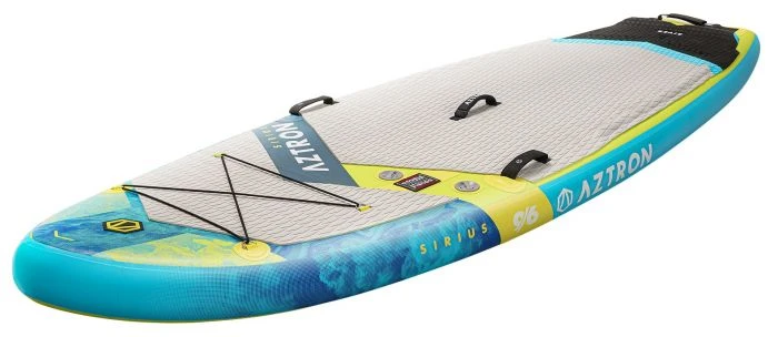 Bij de Aztron Sirius wordt een peddel, pomp, vinnen, draagtas en enkelkoord geleverd. Door middel van de draagtas kunt u het SUP board en de bijgeleverde accessoires gemakkelijk meenemen naar uw favoriete plek. Met de pomp kunt u gemakkelijk beide luchtkamers opblazen en de vinnen vervolgens bevestigen. Hierdoor kunt u de wildere wateren op. Het enkelkoord zorgt ervoor dat u veilig bent tijdens de actie op het water. Als u er vanaf valt drijft het board niet weg als u er van af valt. Het gegraveerde dek zorgt ervoor dat u er niet zomaar van af valt. De Aztron Sirius heeft een speciaal gegraveerd dek die ervoor zorgt dat u grip heeft tijdens het suppen. De achterzijde van het board gaat schuin omhoog. Hierdoor kunt u een betere houding aannemen tijdens het suppen en meer kracht zetten tijdens het peddelen.