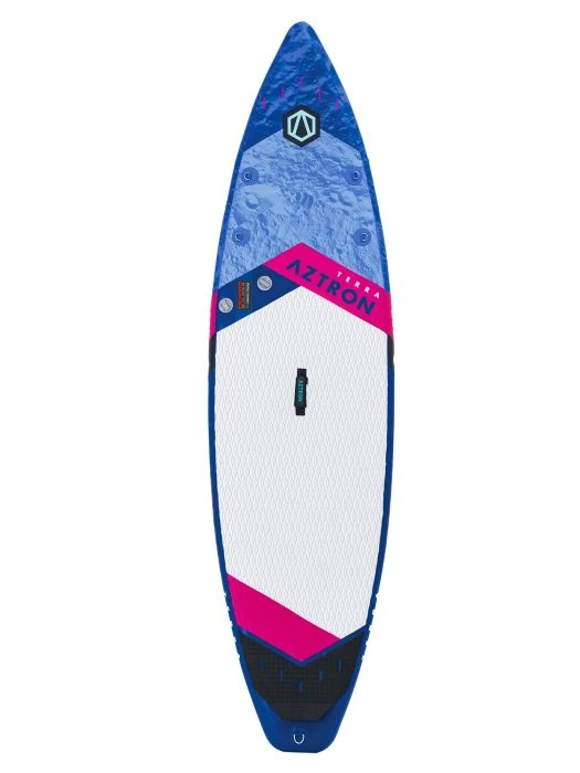 Het Aztron Terra SUP board is speciaal ontworpen voor het touren. Dankzij de puntige vorm van de Aztron Terra snijdt u gemakkelijk door het water en het brede ontwerp zorgt voor veel stabiliteit. Hierdoor kunt u voor een langere tijd op avontuur gaan. Ook zorgt de voetensteun op de achterzijde van de Aztron Terra voor een betere houding op het board. Hierdoor kunt u optimaal uw kracht zetten tijdens het peddelen. Door de lengte, breedte en het draagvermogen is het Aztron Terra SUP board geschikt voor vrouwen of jongvolwassenen. De Aztron Terra is minder geschikt voor sportief gebruik en hoge snelheden.