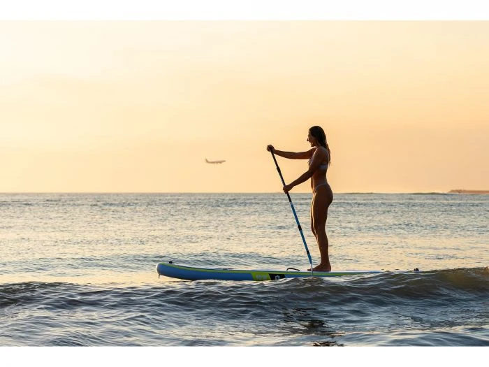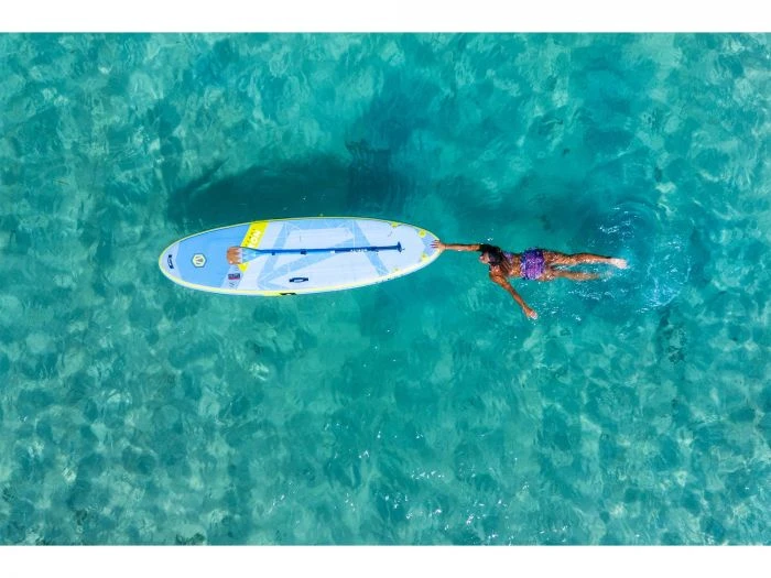 De Aztron Venus wordt vaarklaar geleverd. Zo wordt er een peddel, handpomp, enkelkoord, vin en een draagtas bijgeleverd. In de draagtas kunt u de volledige set opbergen en vervoeren naar de plek waar u tot rust wilt komen. Door middel van de handpomp kunt u de Aztron Venus aan de waterkant opblazen en na het bevestigen van de vin kunt u het water op. De vin zal voor extra stabiliteit zorgen tijdens het suppen. Daarnaast is het dek van de Aztron Venus gegraveerd waardoor u extra grip heeft tijdens de yoga of fitness oefeningen. Zo kunt u al uw oefeningen doen op het wateroppervlak. U hoeft zich geen zorgen te maken als u er toch vanaf valt, aangezien het enkelkoord ervoor zal zorgen dat u niet wegdrijft van het SUP board. Zo bent u veiliger tijdens het suppen. Aan de hand van het fitness eiland kunt u met uw vrienden gezamenlijk oefeningen doen of bijvoorbeeld een yogaklas houden. U kunt namelijk meerdere Aztron Venus SUP boards bevestigen aan het fitness eiland.