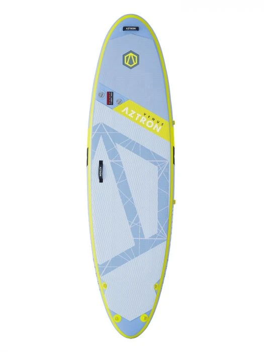 Het Aztron Venus opblaasbaar SUP board is speciaal ontworpen voor uw fitness en yoga op het water. Dankzij de brede vorm van de Aztron Venus heeft u voldoende oppervlakte en stabiliteit voor uw oefeningen. Zo kunt u volledig tot rust komen in de buitenlucht door middel van uw fitness of yoga op het wateroppervlak. Hiernaast kunt u de Aztron Venus ook gewoon gebruiken als normaal SUP board om bijvoorbeeld te gaan touren. U kunt de Aztron Venus ook gebruiken als kajak. Het SUP board heeft namelijk de optie om een kajak rugleuning te bevestigen aan de voorzijde van de Aztron Venus. Dit maakt de Aztron Venus zeer veelzijdig. Het SUP board is door de vorming minder geschikt voor actie op het water.