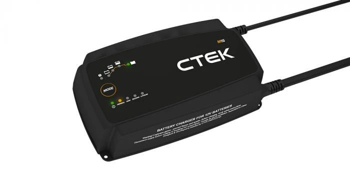 De CTEK M15 is een volautomatische acculader geschikt voor alle soorten 12V lood en lithium accu’s. De CTEK M15 is onder andere bedoeld om op een boot meerdere accu’s te onderhouden en/of op te laden. De CTEK M15 is een 8-staps volautomatische acculader die een laadstroom van 15A levert. De M15 acculader is geschikt voor accu’s met een accucapaciteit van 28Ah tot 300Ah (en tot een maximum van 500Ah in geval van onderhoudsladen).
