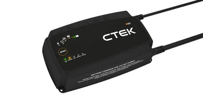 De CTEK M25 is een 8-staps volautomatische acculader geschikt voor alle soorten 12V lood en lithium accu’s. De CTEK M25 wordt met name gebruikt op een boot om meerdere accu’s te onderhouden en/of op te laden. De CTEK M25 is een volautomatische 8-staps acculader met een laadstroom van 25A. Dankzij deze grote laadstroom is de CTEK M25 vooral geschikt voor grotere service-accu’s. Het is de krachtigere variant van de CTEK M15 met 15A. De CTEK M25 acculader is geschikt voor accu’s met een accucapaciteit van 40 – 500Ah.