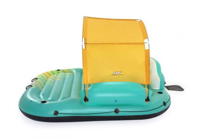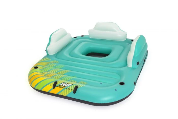 De Hydro Force Sunny Lounge functioneert als opblaasbaar eiland voor 5 personen. De Hydro Force Sunny Lounge is een luxe eiland ideaal om samen met uw familie of vrienden het waterplezier op te zoeken. U kunt volledig tot rust komen met een drankje of fanatiek van de Hydro Force Sunny Lounge afspringen. Met de Hydro Force Sunny Lounge kan iedereen een plezierige tijd beleven op het water. De Hydro Force Sunny Lounge heeft een lengte van 2.91m en een breedte van 2.65 zodat u niet snel van het eiland afvalt.