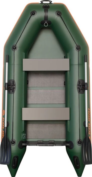 De Kolibri KM 280 is een erg royale karperboot in zijn prijsklasse. De Kolibri KM 280 biedt plaats aan twee volwassene en ruim 150KG bagage. De Kolibri KM 280 wordt geleverd met een lattenbodem. De lattenbodem van de Kolibri KM 280 bestaat uit een aantal latten en een deel PVC. U kunt een boekvloer bijbestellen om de vloer nog stabieler te maken. De karperboot heeft een legergroene camouflage kleur zodat u niet opvalt tegen de kade, bomen en struiken. De KM-280 is uitgerust met een stevige watervaste houten spiegel die is afgewerkt met een stootvast PVC-profiel.
