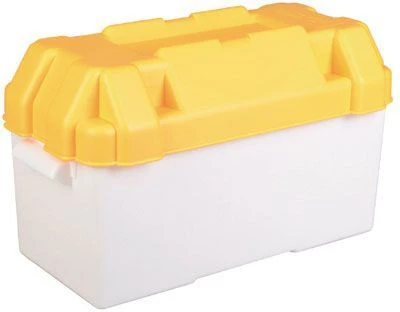 Deze kunststof accubak is gemaakt van stevig wit kunststof en beschikt over een veiligheidsriem om de deksel op zijn plaats te houden. De accubak kan gemakkelijk vastgezet worden door middel van de bijgeleverde montagebeugels, op bijvoorbeeld de vloer van uw boot.