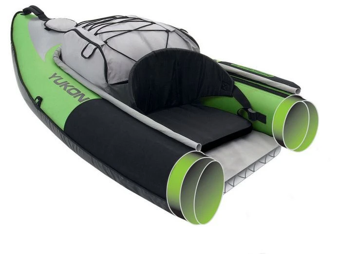 De twee stoelen in de Sevylor Yukon zijn opblaasbaar, verstelbaar en overdekt met polyester canvas. Door de stoelen te verstellen kunt u het aantal personen in de kajak laten variëren van één tot twee. Met de twee bijgeleverde verstelbare voetsteunen kunt u zich schrap zetten, en veel kracht zetten tijdens het peddelen. Door de praktische handvaten aan de voor- en achterzijde kunt u de boot makkelijk in- en uit het water halen en vervoeren. Met behulp van de drainageplug aan de achterzijde kunt u eventueel spatwater snel en simpel uit de kajak laten lopen. De kajak beschikt verder over drie onafhankelijke luchtkamers die u gemakkelijk kunt bereiken via de rits in de zijkant van de boot.