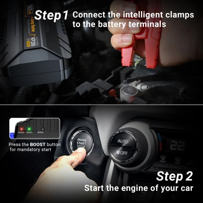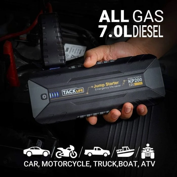 De Tacklife KP200 startbooster is geschikt voor 12V voertuigen en voor alle benzine- en 7 liter dieselmotoren. De Tacklife KP200 startbooster heeft een piekvermogen van 2000A en een startvermogen van 500A. Het design van de Tacklife KP200 is 30% dunner dan de Tacklife T-Serie. Hierdoor is de startbooster gemakkelijker te vervoeren en ligt deze fijner in de hand.