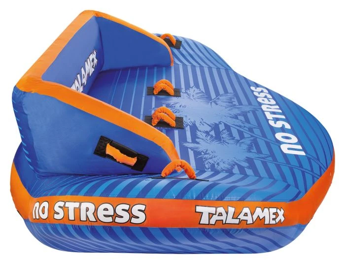De Funtube No Stress is een multifunctionele driepersoons funtube. Zo kunt u met de Funtube No Stress volledig tot rust komen op het water, of juist het waterplezier opzoeken. Met de acht handgrepen van de Funtube No Stress kan iedereen zich goed vasthouden en de neopreen pads zorgen ervoor dat u stevig zit. Het ontwerp van de Funtube No Stress is speciaal gemaakt voor snelheid, dus zodra u de funtube achter een motorboot of jetski hangt kan de pret beginnen!
