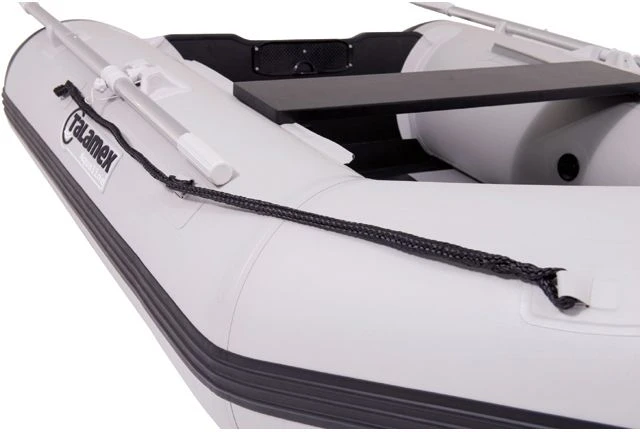 De Talamex QLS 250 heeft geen beschikking over een opblaasbare kiel, wat hem minder stabiel maakt. Wel is de Talamex QLS 250 compleet uitgerust met onder andere 2 peddels, een transporttas, reparatieset en een luchtpomp. U blaast de boot op via 3 aparte luchtkamers, waardoor u altijd door kan varen. Ook in het geval van lekkage. Het materiaal bestaat uit 1100D dik PVC-doek voor een extra lange levensduur. De Talamex QLS 250 uit de Aqualine wordt geleverd met alle accessoires om meteen het water op te kunnen. Niet alleen is de Talamex QLS 250 uitgerust met een rubberen stootrand, maar ook met 2 relinglijnen en RVS sleepogen. Dit model is ideaal als bijboot.