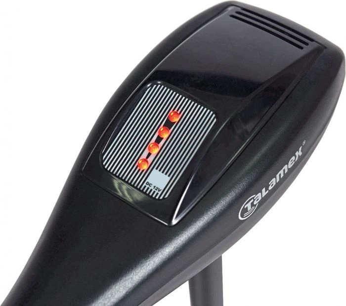 Ondanks haar uitstekende prijs beschikt de Talamex TM58 over maar liefst 5 vooruit en 3 achteruit versnellingen. De heldere LED accu-niveau indicator geeft duidelijk de status van uw accu weer, zodat u weet hoe lang u nog elektrisch kunt varen. De TM58 elektrische buitenboordmotor is traploos in diepte instelbaar met behulp van een stevige stelschroef op de bracket. Dat is handig als u wilt varen in ondiep vaarwater of als u uw boot op de kade wilt leggen. Ook het stuurgedrag van de Talamex TM58 is goed instelbaar. De helmstok heeft een comfortabele rubberen grip en is uitschuifbaar. De afstand tussen u en de motor kunt u daardoor traploos instellen. Verder kunt u ook de stuurdruk instellen zodat uw boot soepel stuurt of zodat u de helmstok los kunt laten zonder dat uw boot van koers verandert.
