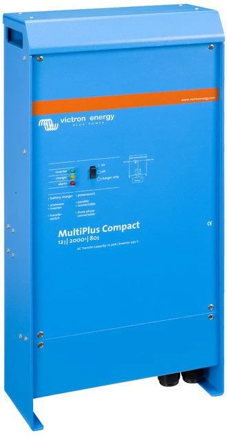 De Victron Multiplus 12 2000 is een omvormer en acculader in één. De Victron Multiplus 12 2000 zorgt ervoor dat stroom uit een aggregaat of van de walstroom automatisch wordt omgezet naar de juiste laadstroom voor uw accu. Hierdoor is de Victron Multiplus 12 2000 acculader en omvormer uitermate geschikt voor gebruik op en in boten. De Victron Multiplus 12 2000 lader is een zware acculader. Dit maakt hem geschikt voor accu’s met een hoge capaciteit. De Multiplus acculader en omvormer is gemakkelijk te bedienen met de schakelaar op de voorkant van de Victron Multiplus 12 2000. Hiermee kunt u de acculader en omvormer aan en uit zetten. Ook is er een optie om hiermee alleen de acculader te gebruiken. De acculader is in 3 stappen volautomatisch. Deze drie stappen zijn: Bulk, absorptie en float. Deze worden aangepast aan het gebruik van uw accu en dit wordt volautomatisch gedaan. Deze stappen hoeft u dus niet zelf uit te kiezen.