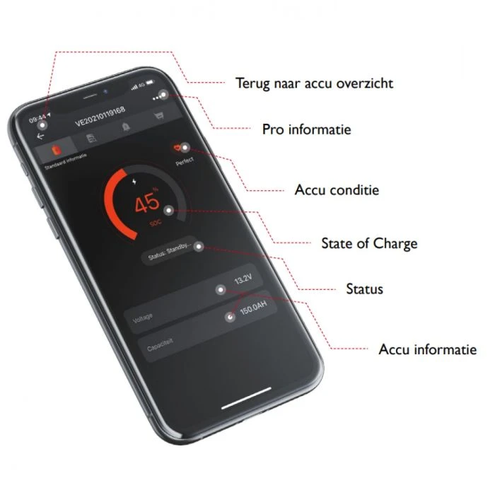 De Voltium 24V 50AH lithium accu beschikt over een bluetooth app. U kunt de Voltium Europe LiFePO4 app downloaden om zo gemakkelijk uw accu te monitoren. Via de Voltium app kunt u onder andere het verbruik en de temperatuur van uw accu inzien. Zo heeft u volledige controle over uw accu en staat u niet voor vervelende verrassingen tijdens het gebruik. De BMS-functie (Batterijmanagementsysteem) beschermt de accu tegen een te diepe ontlading, overladen, overspanning en een te hoge temperatuur.